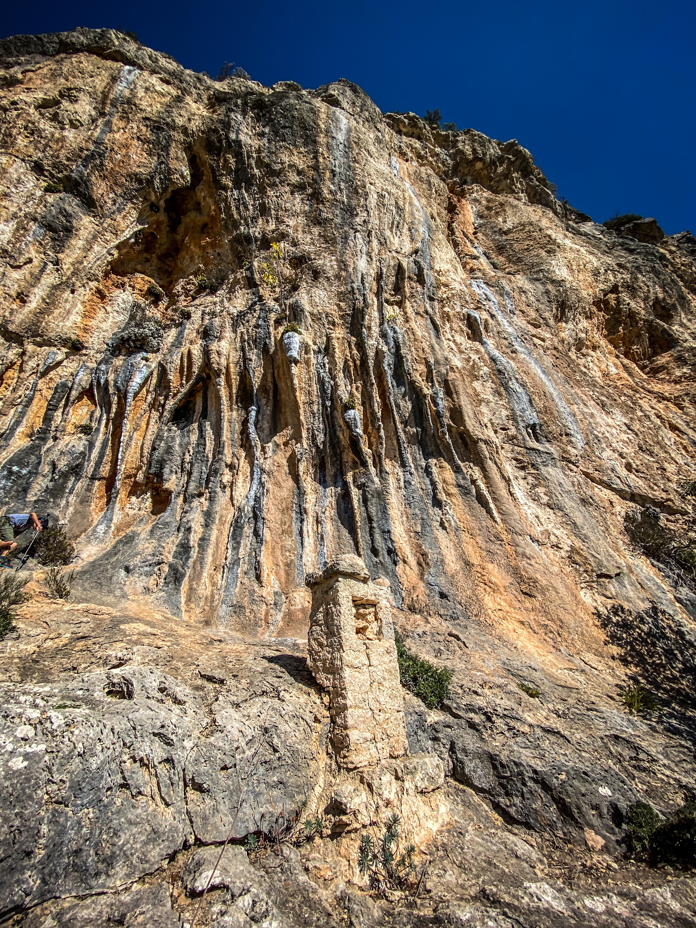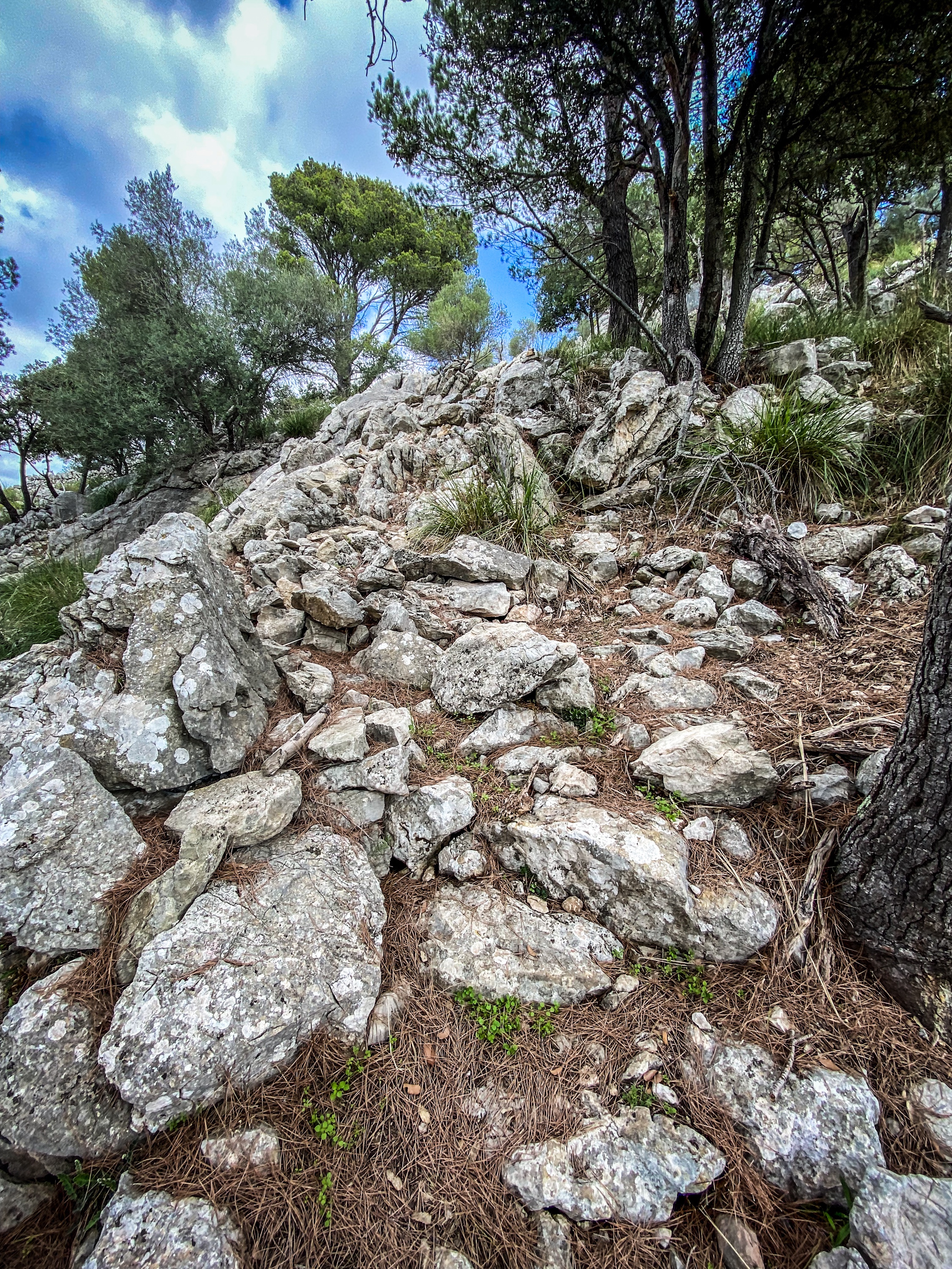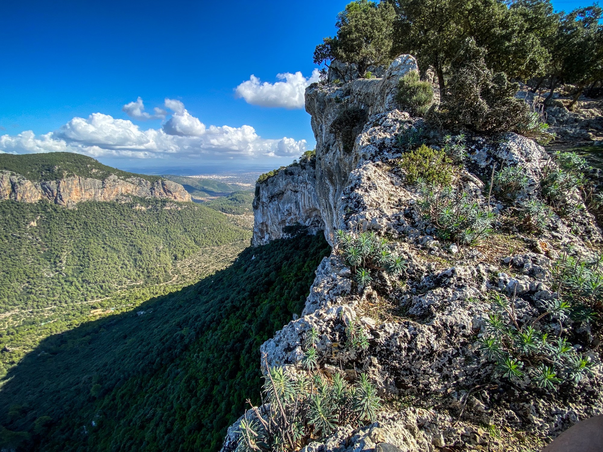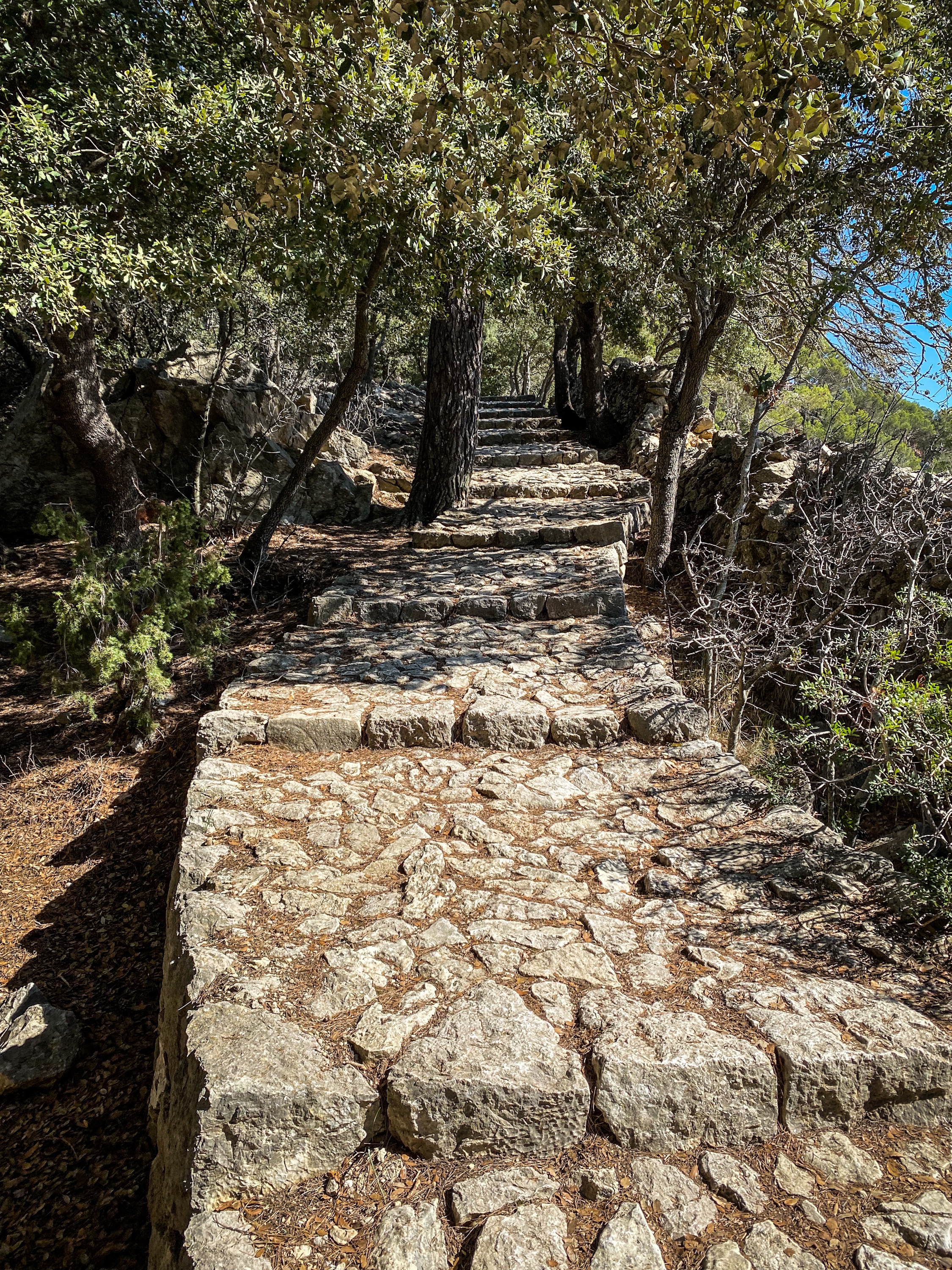 Oben angekommen gab es erst einmal Mittag für Edgar und für uns alle einen tollen Ausblick. Anschließend ein temporärer Abstieg bis zur nächsten (tatsächlichen) Wegkreuzung und dann weiter zum nächsten Aufstieg zu besagtem „Castell d‘Alaro“. Hierhin war der Weg zwar auch beschwerlich aber deutlich besser ausgebaut. Über sehr alte Steinstufen geht es immer weiter Hinauf entlang einer steilen Felswand bis man schlussendlich auf dem Gipfel das Ziel erreicht.