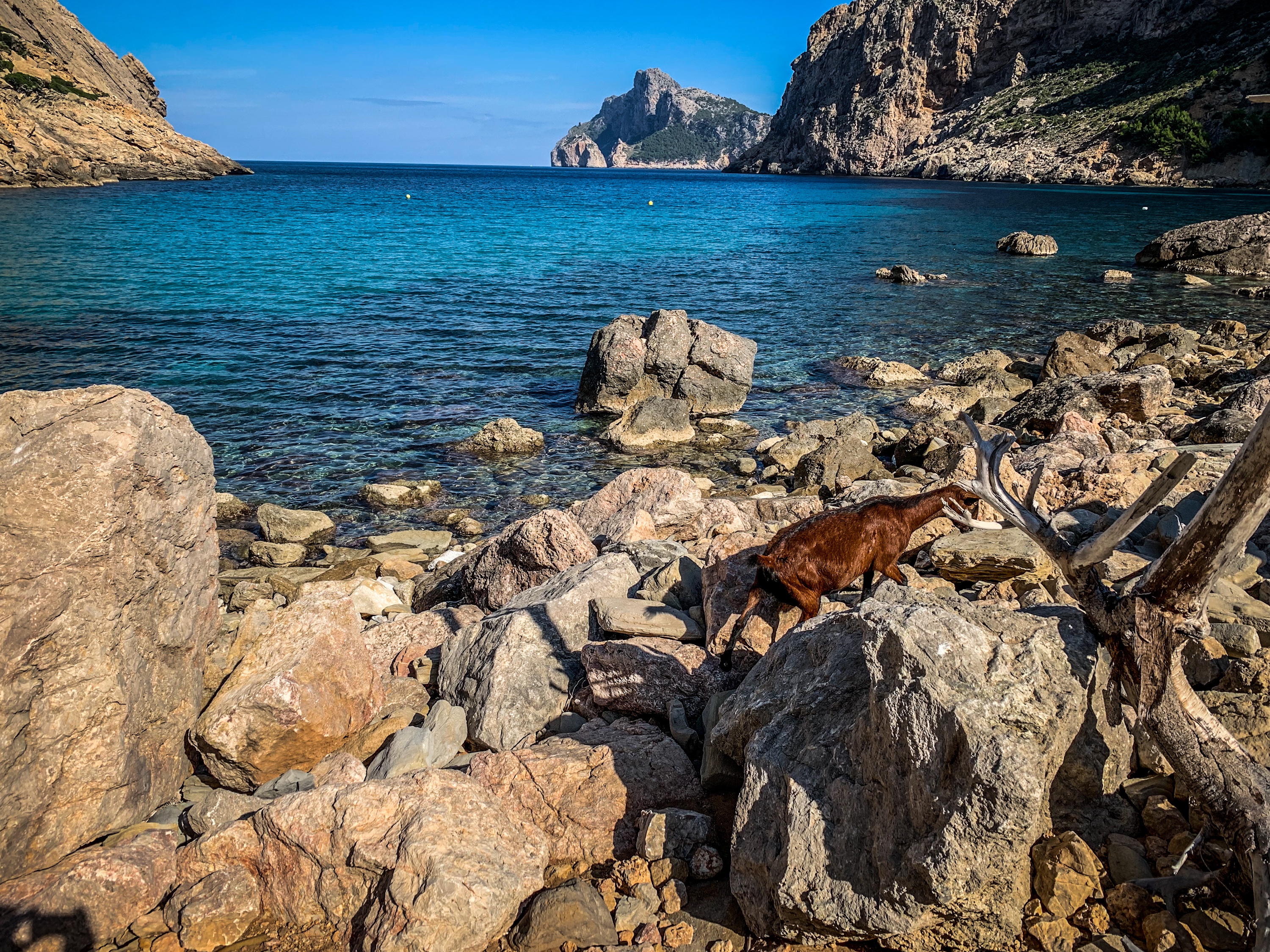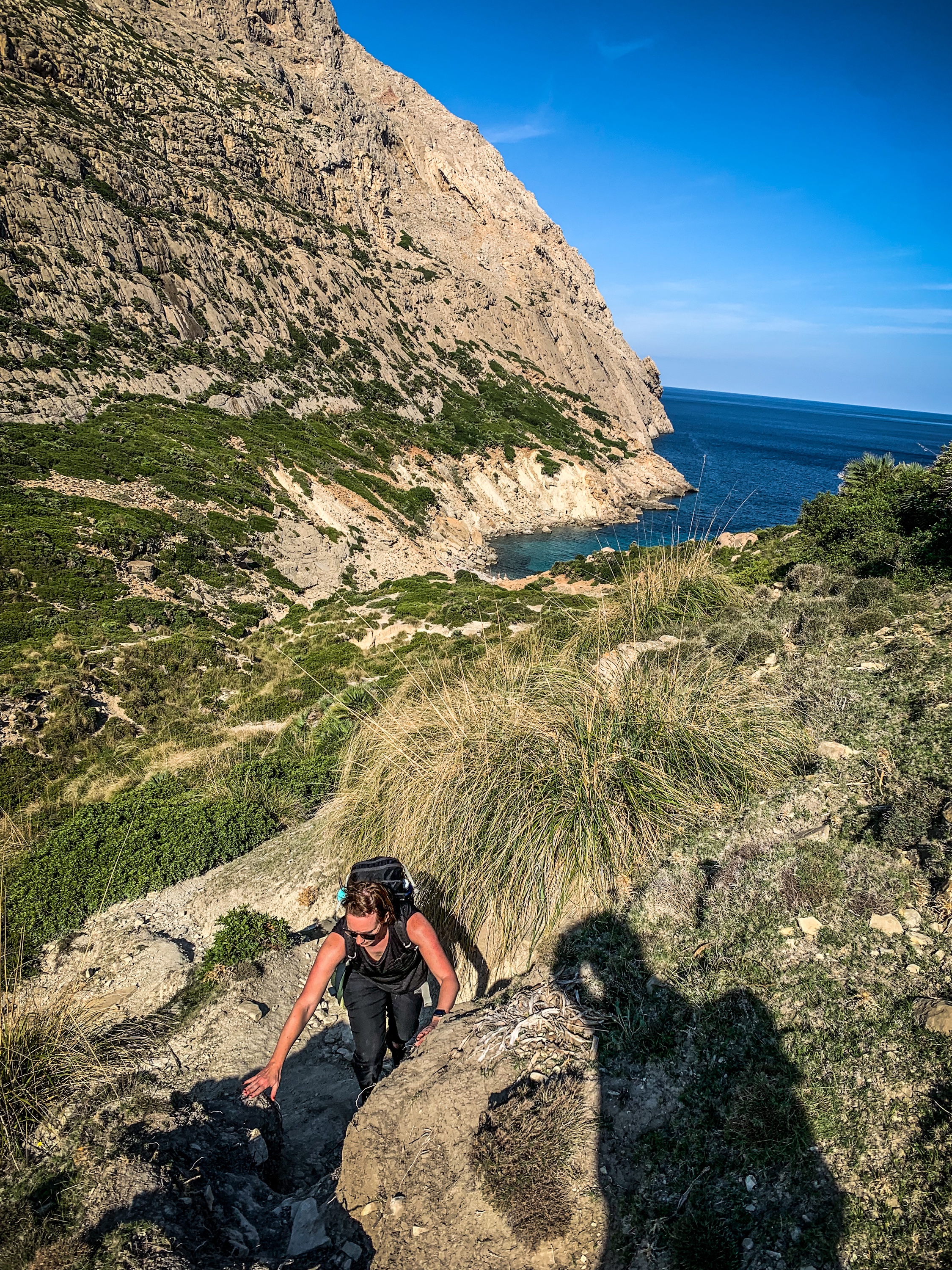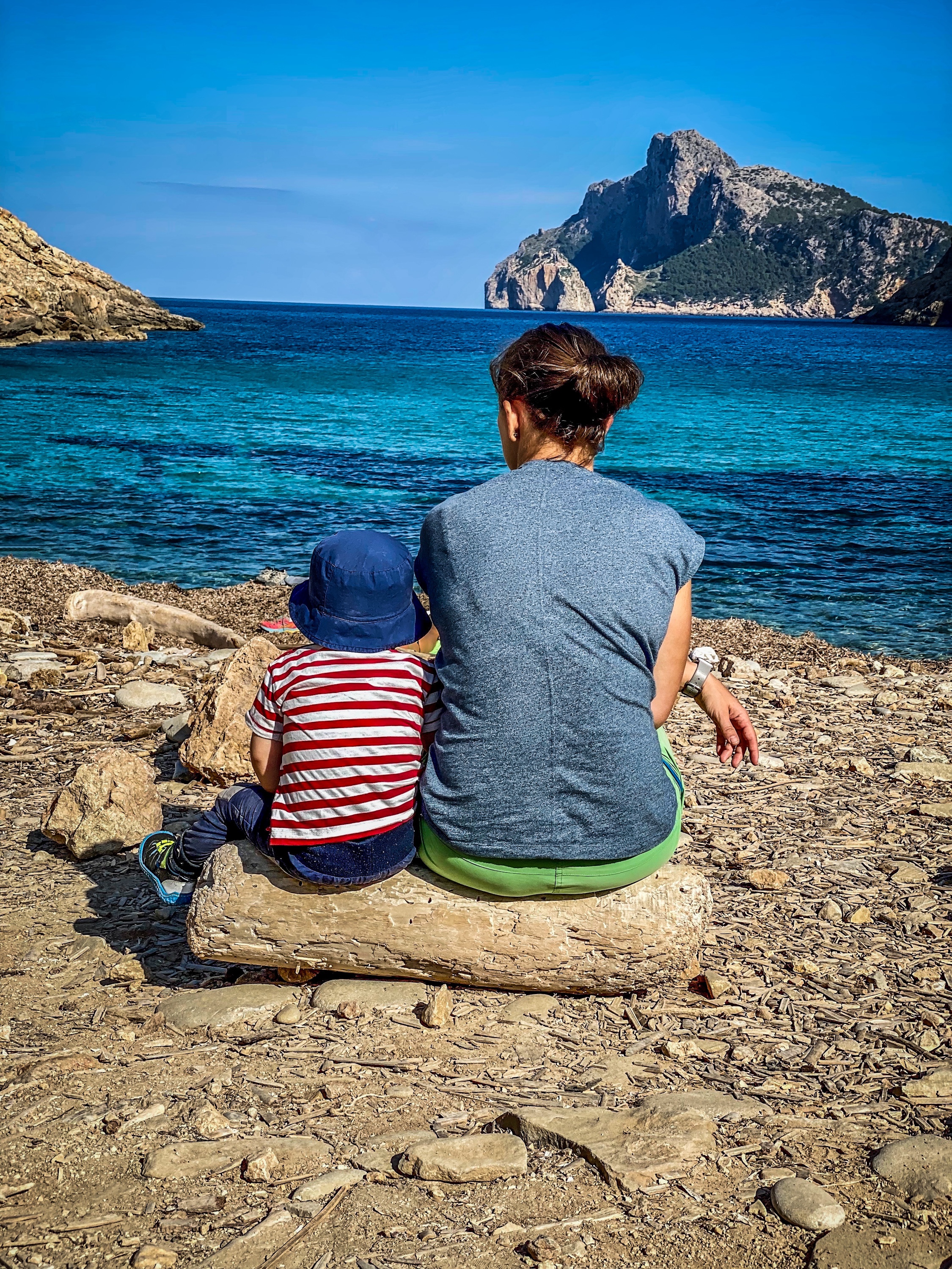 Halbwegs pünktlich ging es dann auch los, mit dem Auto 5 Minuten zu einem Parkplatz von dem der Wanderweg „Vall De Boquer“ gestartet ist. Angenehme kurze Wanderung (hin und zurück knapp 6 Kilometer) zu einer Bucht umgeben von steilen Bergen. Den Weg dorthin kann man mit ausreichender Trittsicherheit auch mit Kind auf dem Rücken zurücklegen.