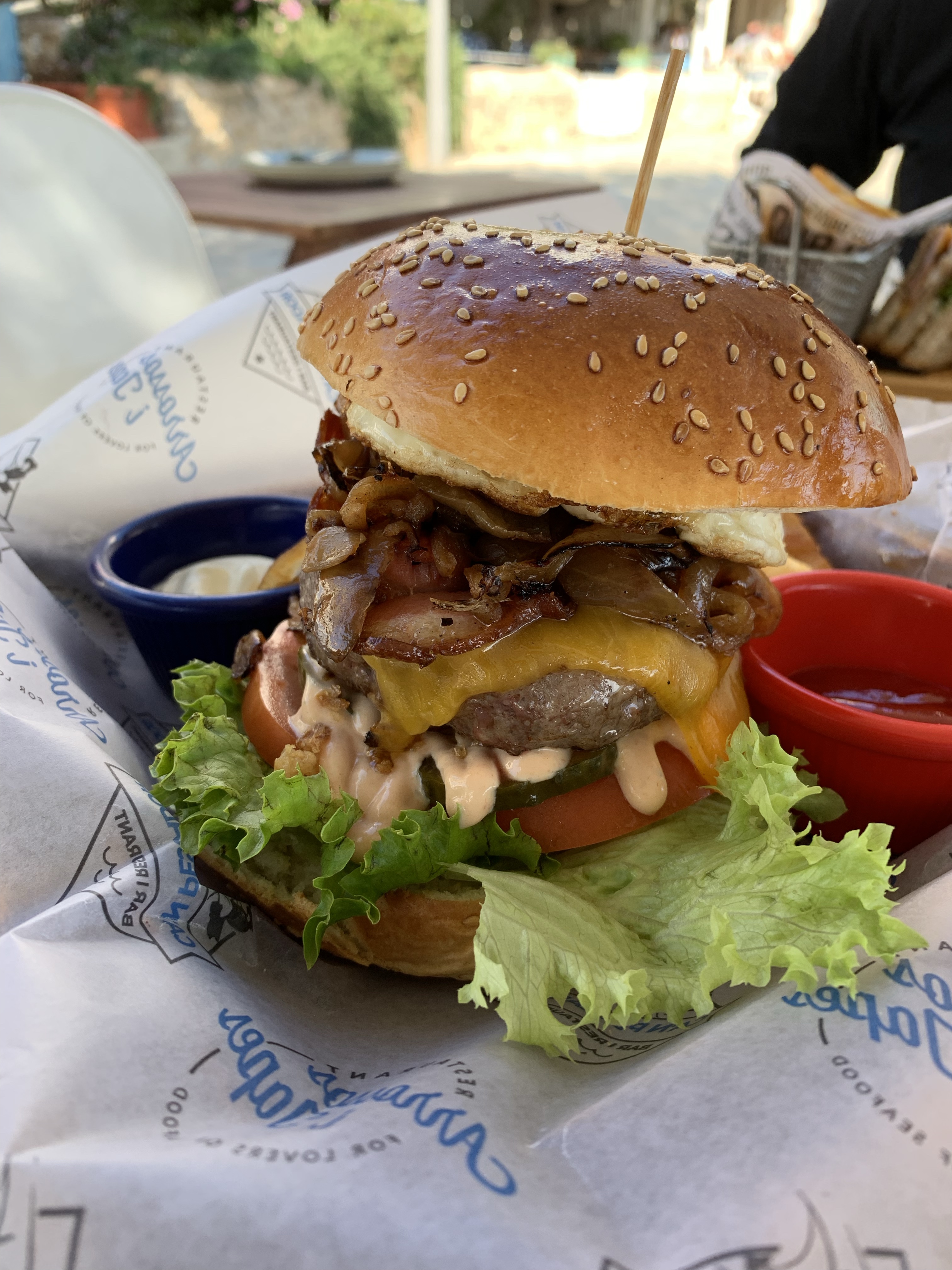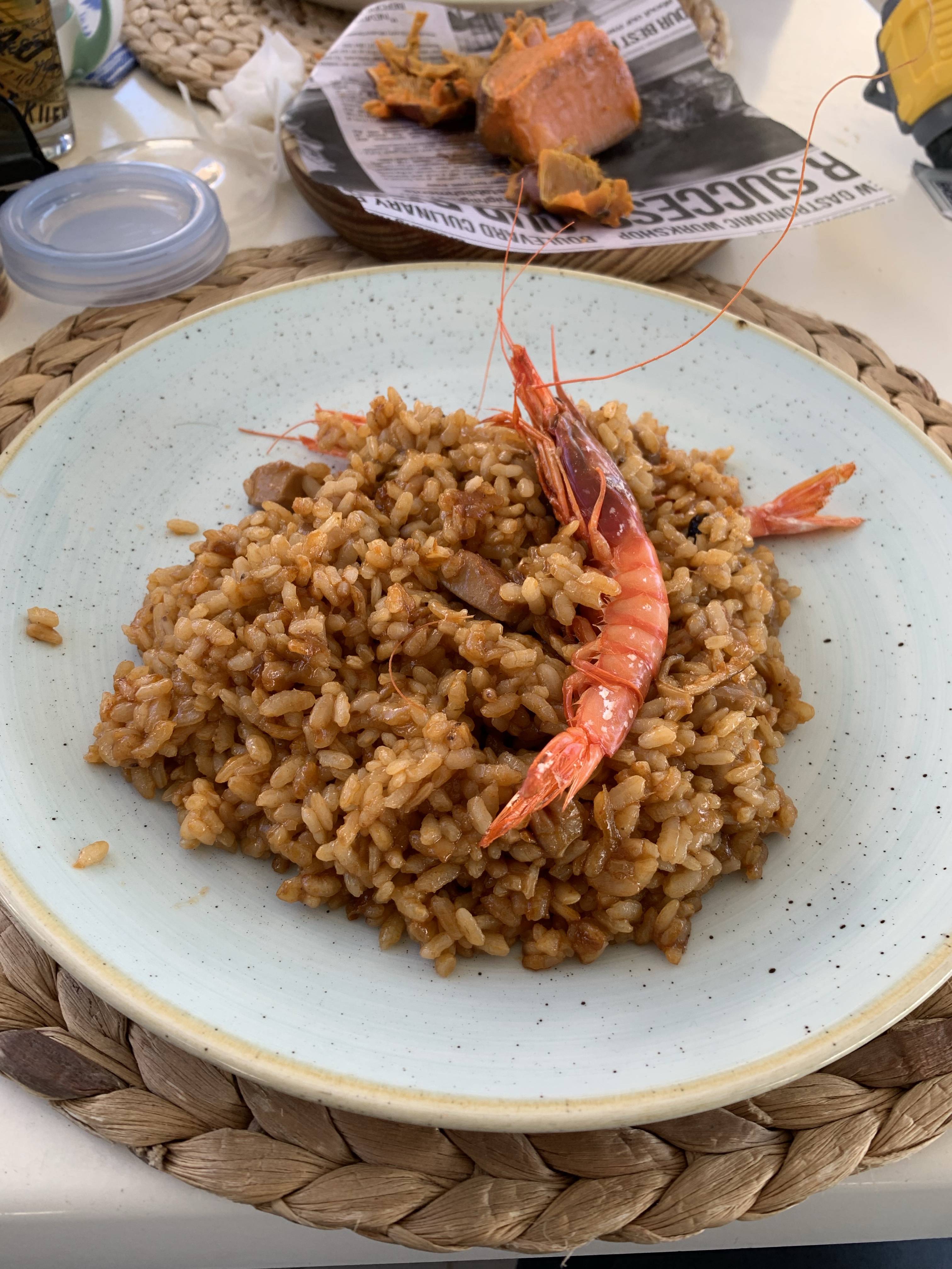 Ausreichend beleiert ging es dann weiter die Promenade entlang zum Restaurant unserer Wahl. Ein Platz direkt am Strand, Paella und umfangreiche Fischauswahl auf der Karte, aber auch Burger und andere Gerichte für Menschen die gerne landestypisch essen… ;-).