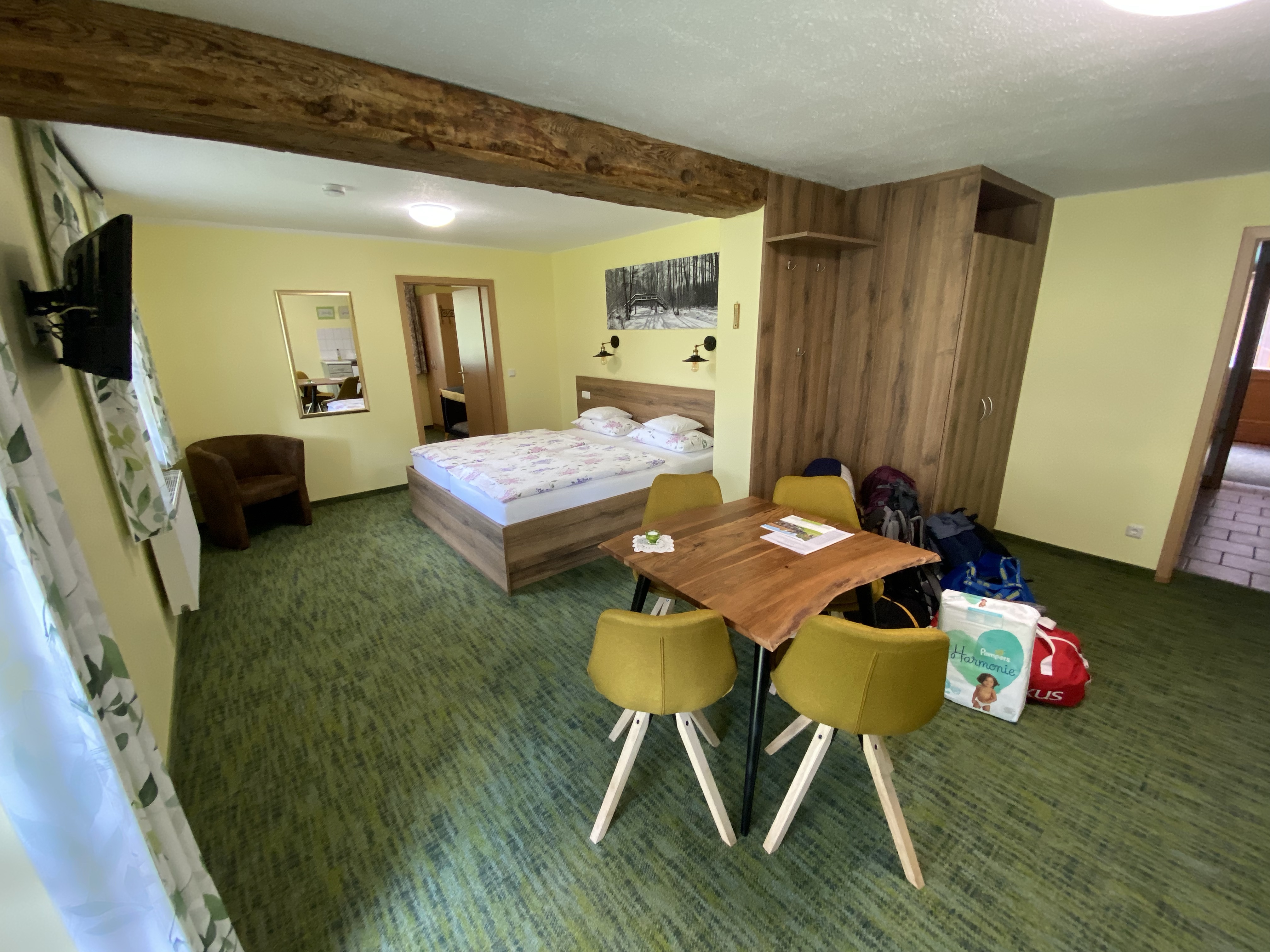 Da Franzi keine Lust auf Haushalt und kochen hatte sind wir für die nächsten Tage in einem kleinen aber feinen Landgasthof (Landgasthof Brodack, Alt Zauche) mit Halbpension untergebracht. Essen ist super, Leute sind sehr nett und Edgar hat ausreichend Platz für den Auslauf…
