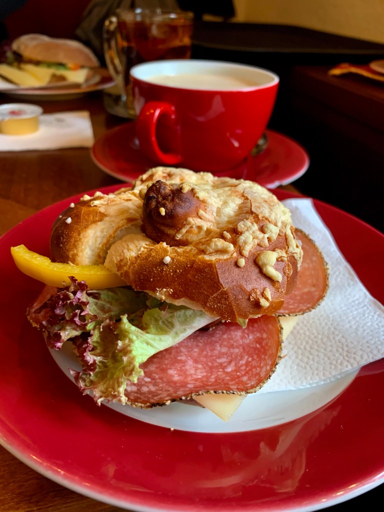 Also los… erst zu einem kleinen aber feinen Bäcker mit leckeren Brötchen. Besonders die „Laugenknöpfe“, ein Laugenbrötchen mit Salz und dann noch Käse überbacken waren Mega. Von dort ging es ein wenig durch Downtown Bernau am Chiemsee, das aber eigentlich nur damit Edgar noch mal pennt.