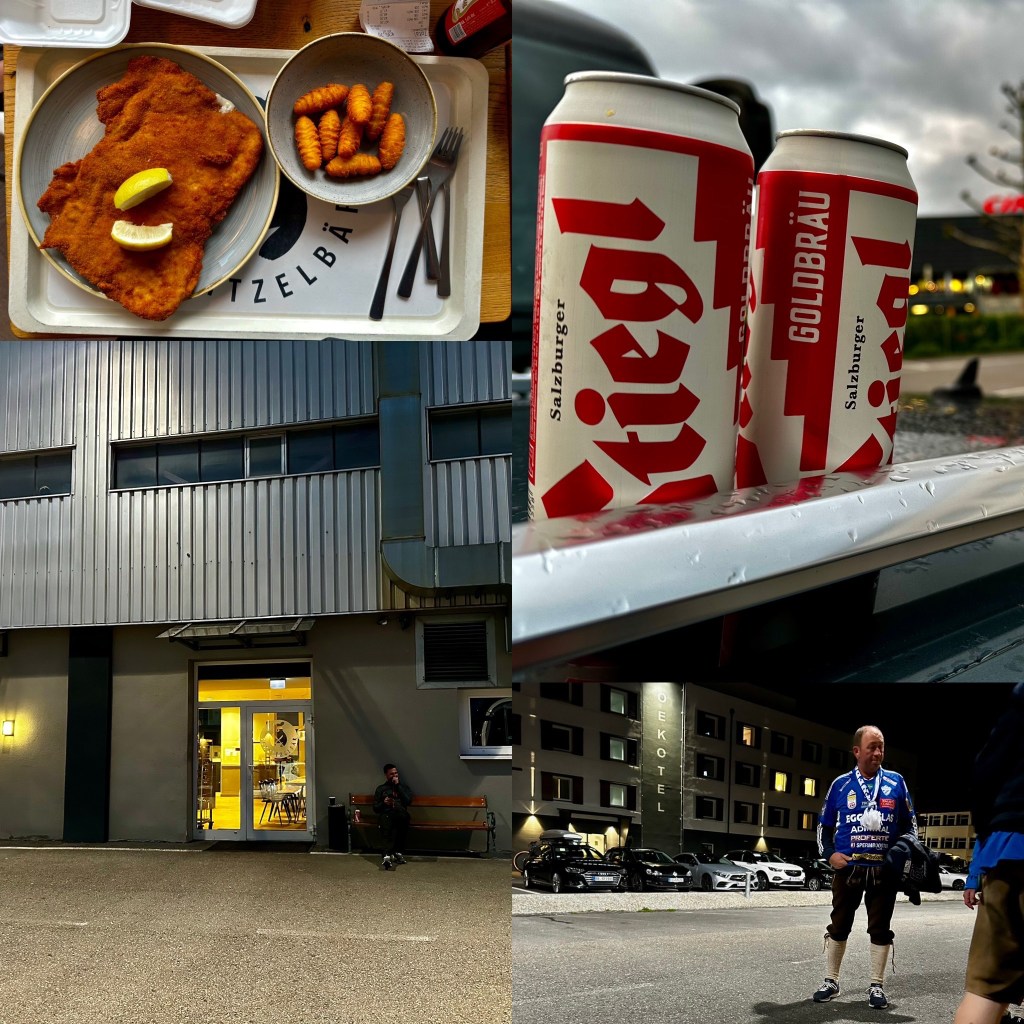Dementsprechend war gestern auch nicht so viel los. Viel Auto fahren, dann noch mal Spielplatz mit den Kids und anschließend was essen beim Schnitzelbär gegenüber dem Hotel.