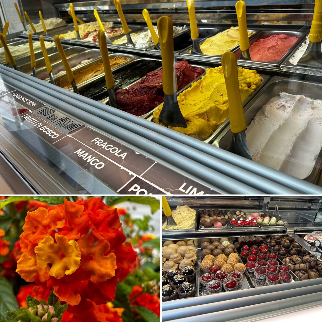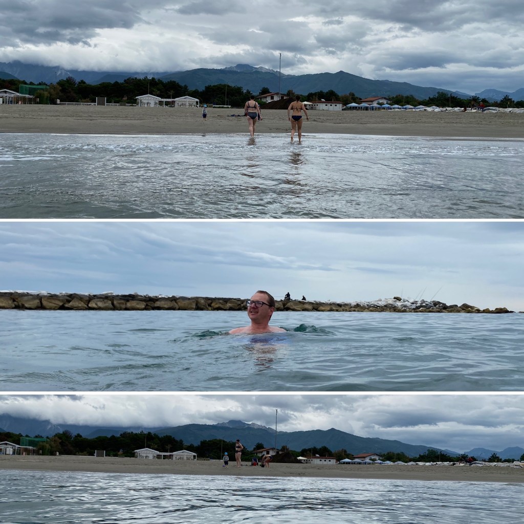 Nach dieser Stärkung sind wir noch ein wenig umhergeschlendert, haben die Yachten im Hafen bewundert, noch ein Gelatto gegessen und uns dann auf den Rückweg gemacht. Wir wollten (und sind) nämlich noch mal zum Strand um wenigstens hier einmal in Wasser zu springen.