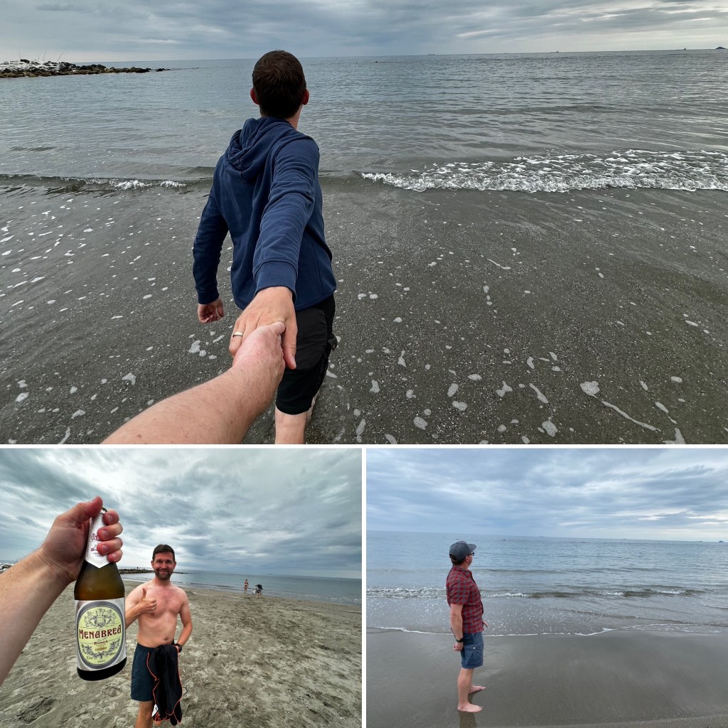 Also ab ins AirBnB und Sachen packen, die Kinder überzeugen das wir noch mal raus müssen und dann los die paar Meter zum Strand. Dort angekommen ging es dann eigentlich auch direkt ins Wasser. Bei milden 19 Grad Außentemperatur doch angenehmer als erwartet.