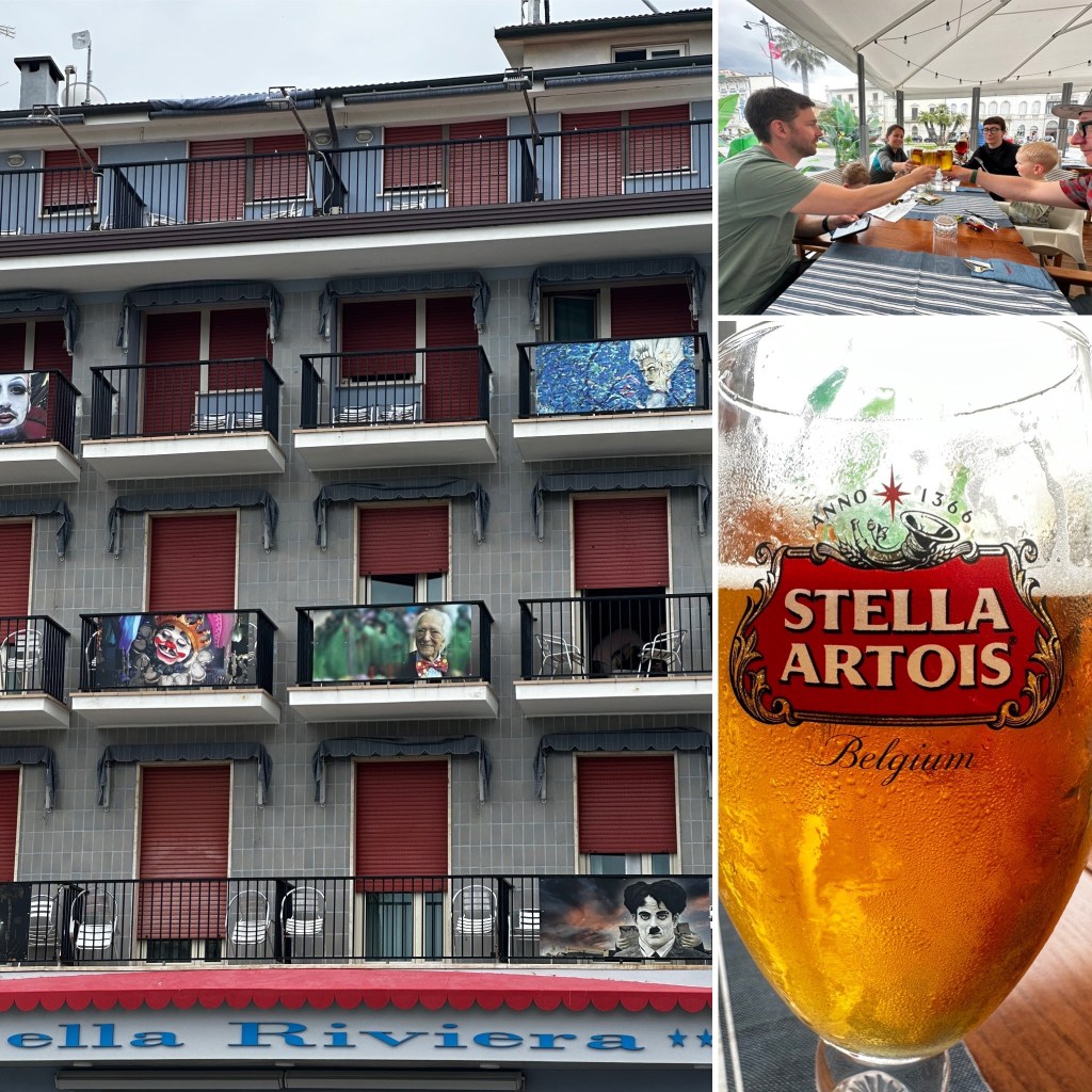 In Viareggio stand dann erst einmal Mittagessen auf dem Programm, also sind wir relativ planlos in eines an der dortigen Promenade gegangen. Man hat sich schon ein wenig wie in Beverly Hills gefühlt, alles etwas versnobt und viele „getunte“ Menschen. Zu Essen gab es mal wieder Pizza und dazu ein Bierchen (7€ für 0,5…). Neben den gehobenen Preisen war es auch auch sehr lecker.