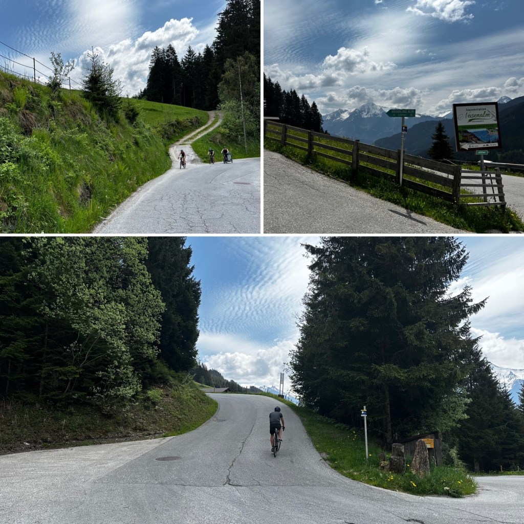 Wie gestern geplant ging es heute nach dem Frühstück auf zur Nasenalm. Ich mit Katja als Vorhut und die anderen eine Stunde mit den E-Bikes hinterher.