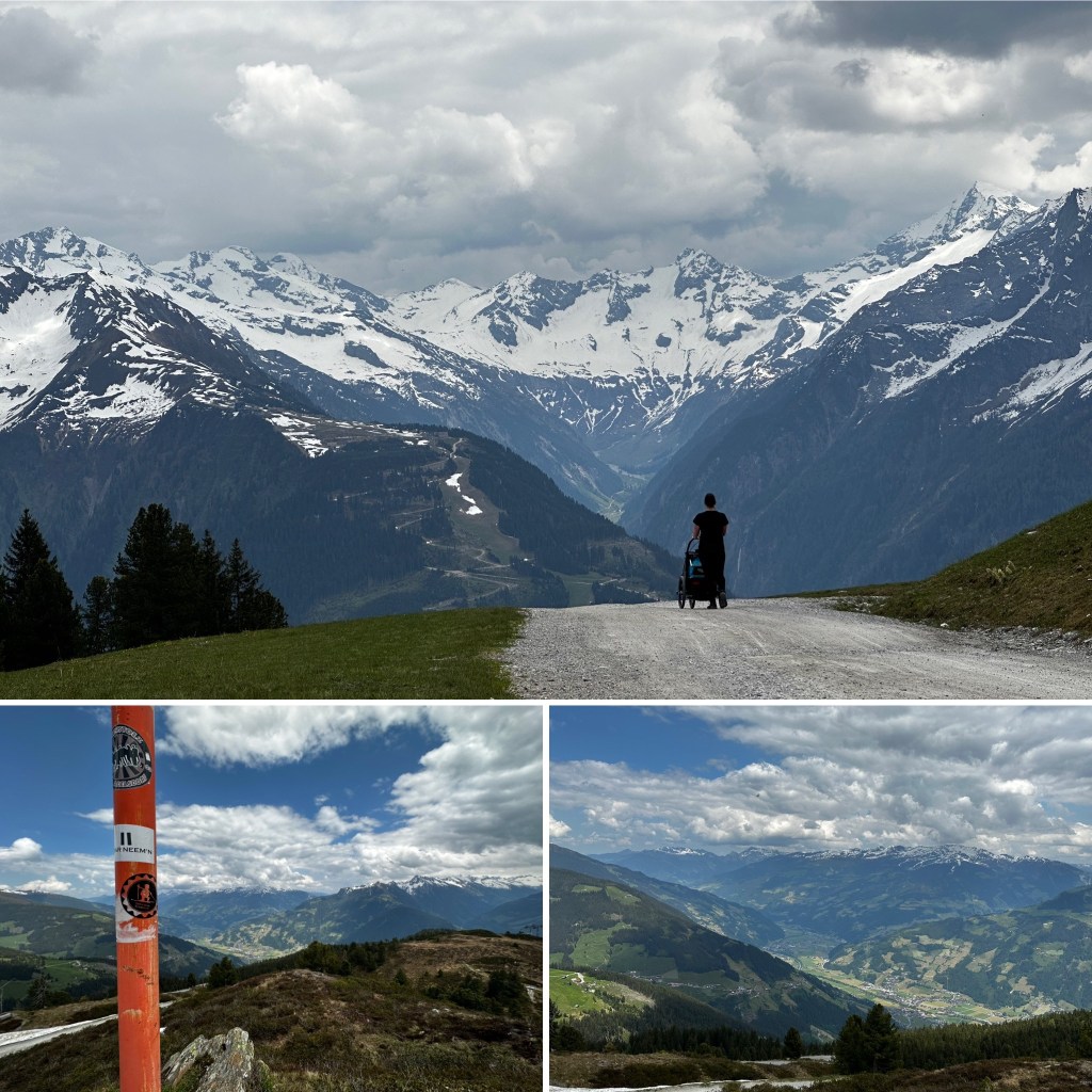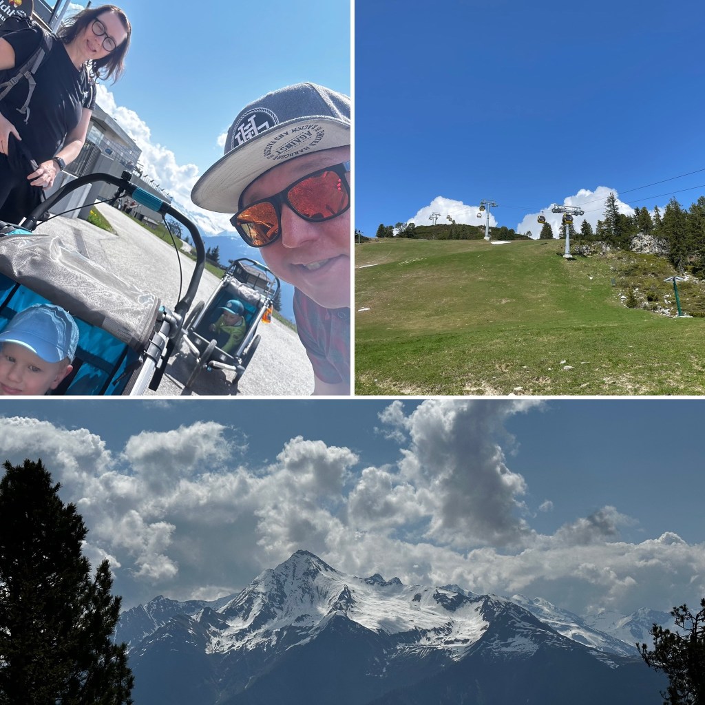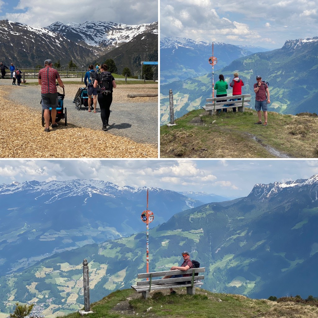 Oben angekommen kurz die Lage gecheckt und dann ging es per Pedes von der Mittelstation hinauf zur Bergstation. Relativ kurze Strecke aber dafür wieder ein paar Höhenmeter und lies sich auch gut mit den Kinderwagen bestreiten.