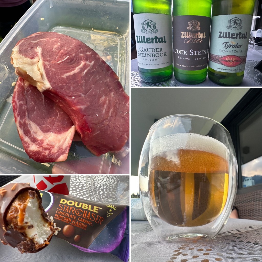 Danach grillen, Essen, Kinder verklappen, Planung für morgen, kleine Bierverkostung (Zillertaler Bock, Bock aus dem Barrique Fass und ein Imperial Zwickl) und ne Runde SkipBo.