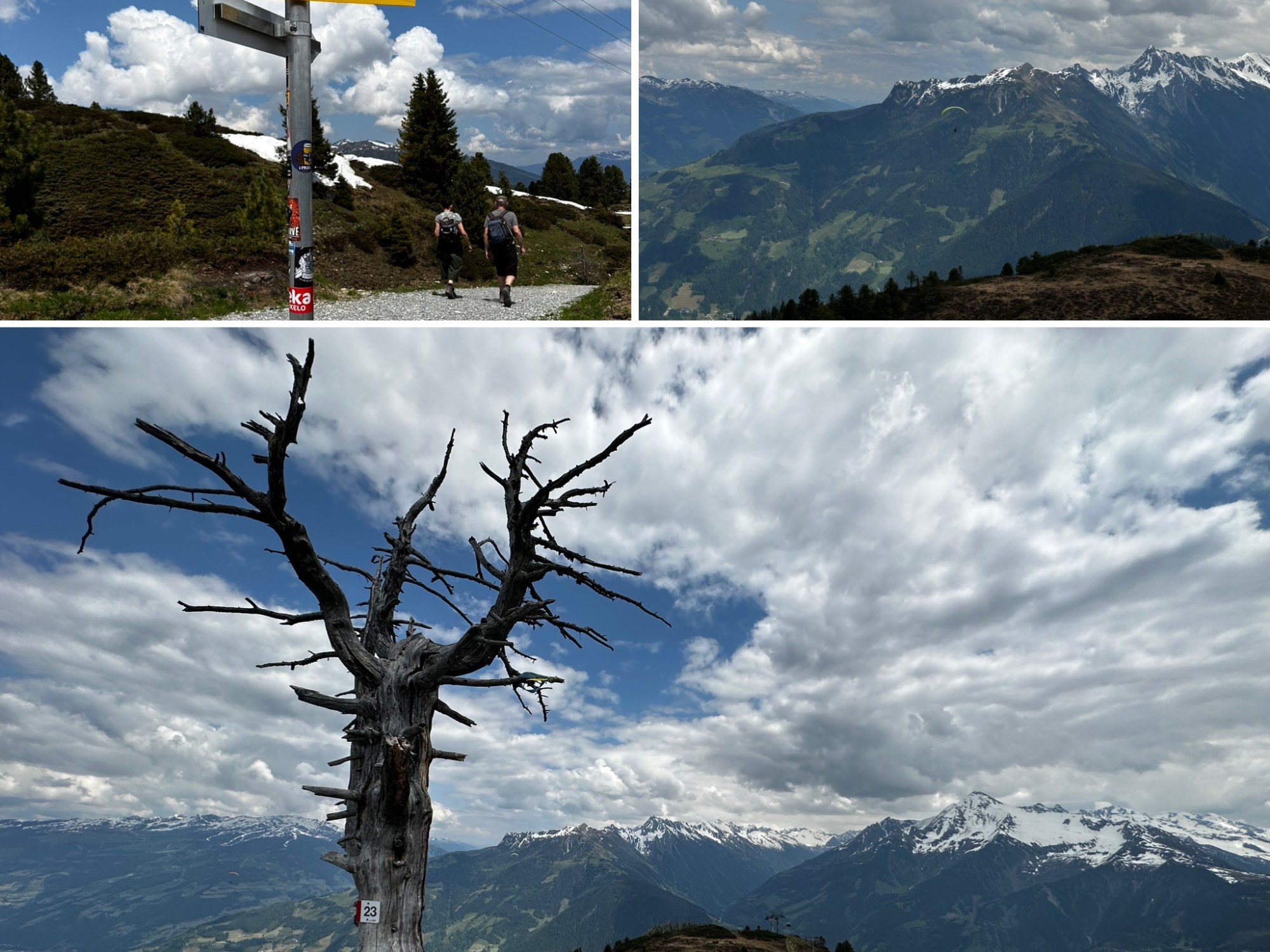 Ausreichend gesättigt haben wir uns dann, über Umwege, wieder auf den Weg nach unten gemacht. Über den Panoramarundweg Penken gemächlich bis zur Mittelstation um dort im Sportladen ein wenig zu shoppen (Franzi) und dann ging es mit der Gondel wieder hinab ins Tal bzw. direkt nach Mayrhofen. Dort sind wir dann wiederum alle in die hiesigen Sportläden gestürmt und haben alles etwas gekauft (außer Katja)…