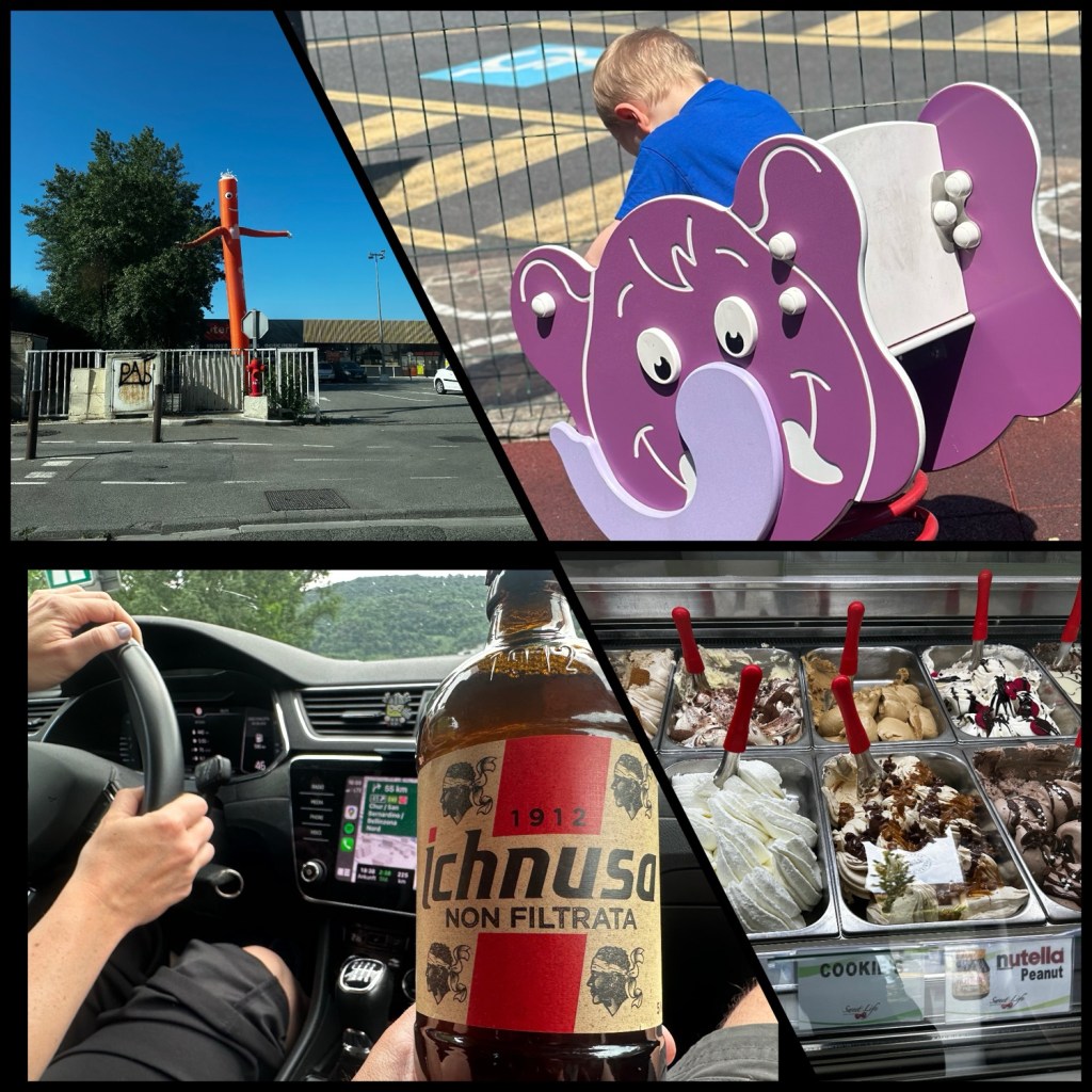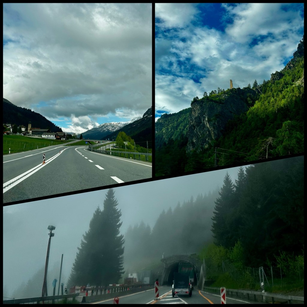 8,5 Stunden reine Fahrzeit waren zu bewältigen… lief auch gut. Entlang der Küste, vorbei an Monaco, Genua sowie Mailand, immer weiter gen Norden. Der erste kurze Stopp war mittags für ein Picknick irgendwo in Italien an einem AutoGrill und dann später noch mal, um Pesto und Nudeln in einem Supermarkt zu kaufen (sowie für ein Italia Gelato).