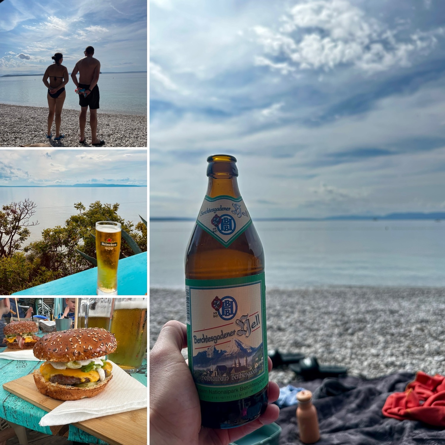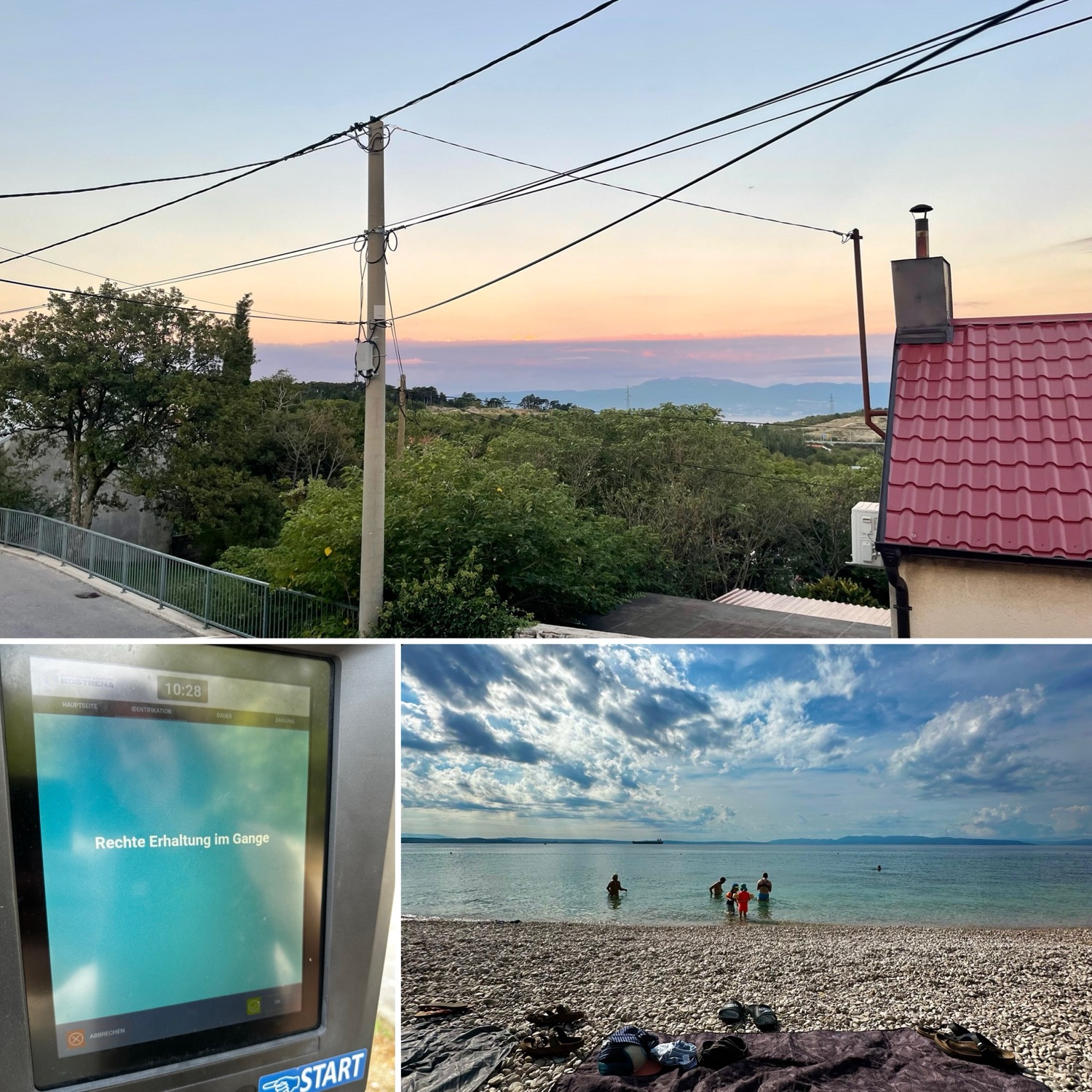 Heute der erste Tag in unserer „Langzeit-Butze“ und dazu noch gutes Wetter! Also entspannt mit Frühstück und einem Sprung in den Pool gestartet.Gegen 10 ging es dann los in Richtung Strand, dem Kostrena Beach. Wie hier in Kroatien üblich ein Kiesstrand, aber dennoch ganz schön. Hier haben wir gut 3 Stunden gechillt, im sehr klaren Wasser gebadet und Steinburgen gebaut… kurz nach Mittag sind wir aufgebrochen und haben in einem „Strand-Restaurant“ Burger gegessen, um danach einkaufen zu fahren.