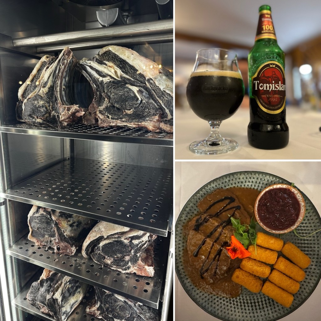 Aufgrund der fortgeschrittenen Zeit haben wir uns entschlossen, unterwegs zu essen und haben daher das Restaurant Gradina in Josipdol angesteuert… und glücklicherweise in dieser verlassenen Gegend noch eine Tankstelle gefunden – unser Tank war nämlich ganz schön leer. Egal! Das Restaurant liegt zwar an der Autobahn, war dafür aber gut, günstig, und wir konnten das erste Mal Bärensteak essen.