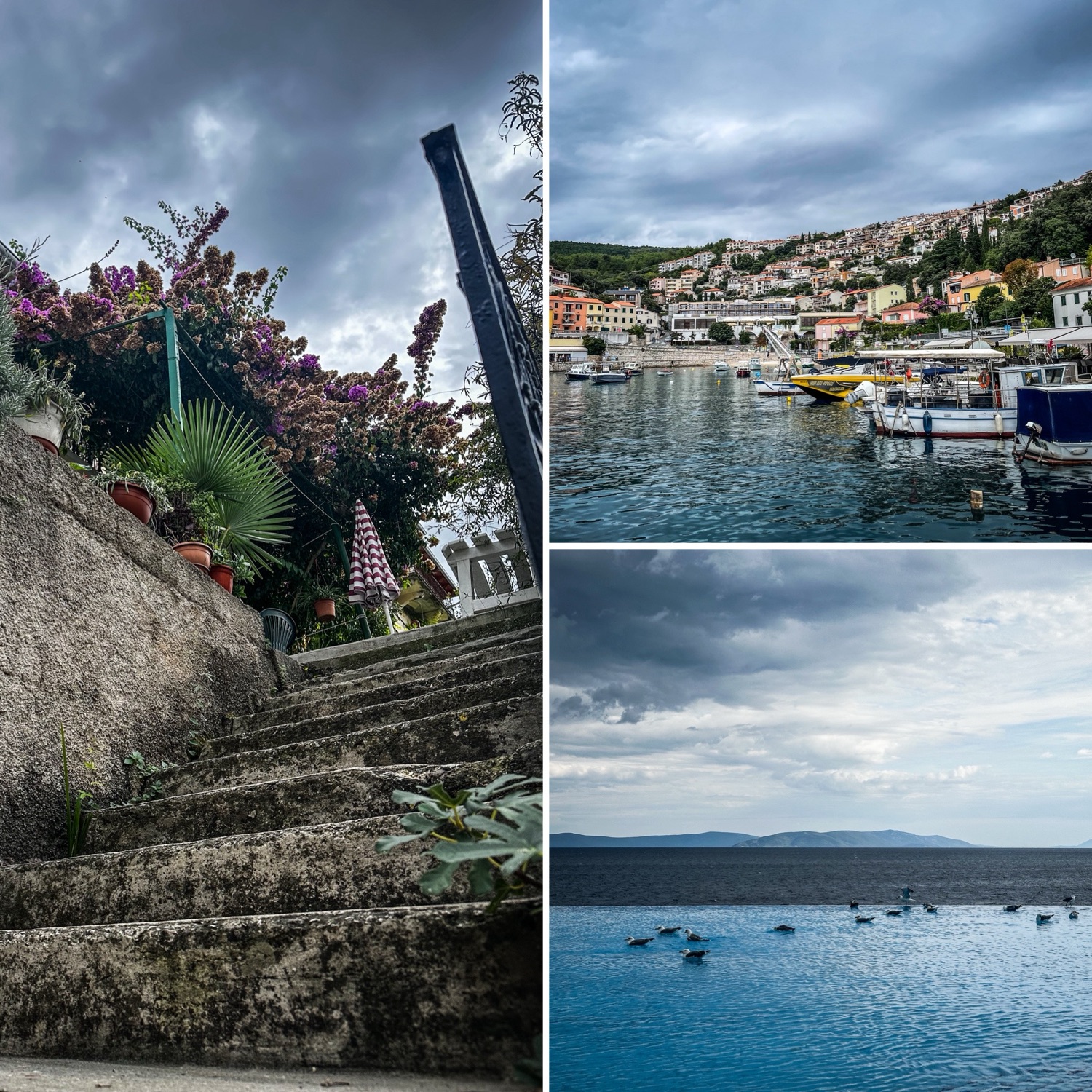 Hier dann wieder mal Essen und anschließend mit so einer Bimmelbahn in Richtung Rabac. Also so eine Touri-Fake-Eisenbahn. Rabac ist schon witzig, wie es so in den Hang gebaut ist, aber hier war natürlich durch die Nebensaison auch tote Hose. Also sind wir einfach wieder zurück in Richtung Hotel gelaufen, haben den Kids unterwegs noch ein Eis gegönnt und sind nach Ankunft im Hotel noch einmal heroisch in den Pool gesprungen!
