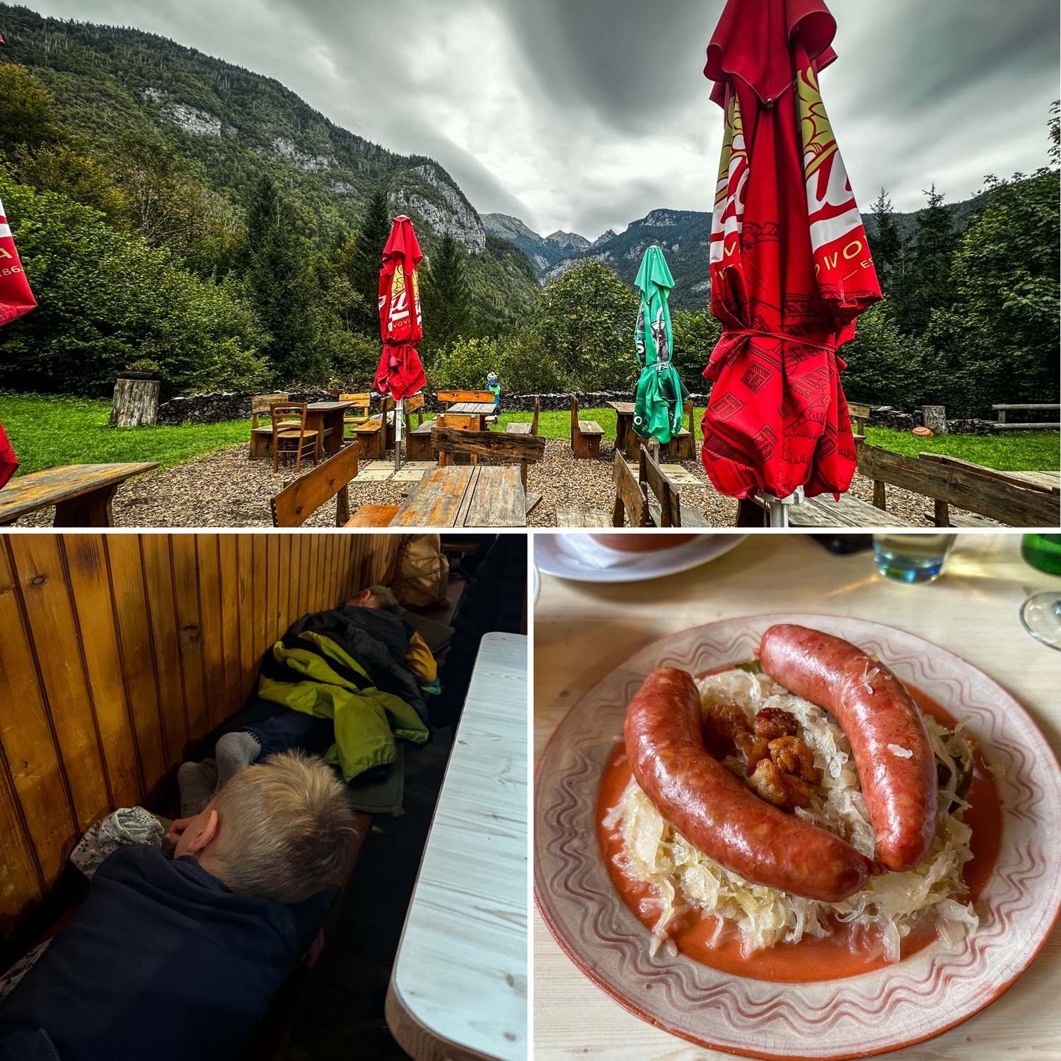 Ein toller Weg – die 5 bis 6 Kilometer bis zum Wasserfall sind zwar kein Spaziergang, aber auf jeden Fall gut machbar, wenn man trittsicher ist und keine Kinder dabei hat :-P. Wir sind nämlich nur bis zur Planinska koča na Vojah, einer Berghütte auf etwa halber Strecke, gekommen. Dort gab es etwas zu essen, zu trinken und die Möglichkeit, gemütlich zu rasten. Die Kids haben bis hierher wirklich gut mitgemacht, aber die gesamte Strecke hin und zurück – also knapp 12 Kilometer – wäre dann doch etwas zu viel gewesen.